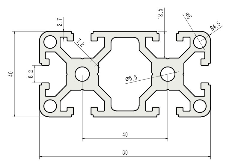 適用于應(yīng)力及強(qiáng)度較大的框架組合結(jié)構(gòu),它的外型采用圓角過渡,表面經(jīng)過陽(yáng)極氧化處理,高雅美觀并抗腐蝕,它通常采用M8X20高強(qiáng)度專用螺栓加彈性扣件的內(nèi)部連接方式,堅(jiān)固而又可靠,是工業(yè)框架應(yīng)用較為廣泛的型材之一。